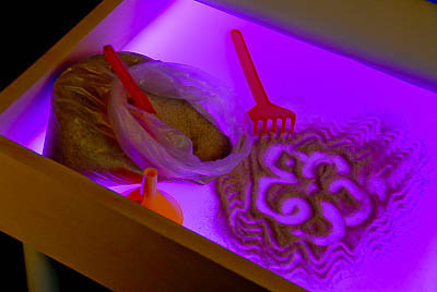 Комплектность: напольный световой модуль из бука для экспериментов с песком со съемными регулируемыми ногами (0-3 ростовые группы) – 1 шт.; крышка для светового модуля – 1 шт.; мелкофракционный кварцевый песок – 2 кг; комплект для экспериментов (трафарет «Линейка», трафарет «Клетка», маркер на водной основе, грабли, лопатка, воронка) – 1 шт.; блок питания 220 В/50 Гц – 1 шт.; руководство по эксплуатации – 1 шт.