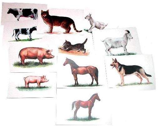 Варианты занятий и игр с карточками могут быть разные. Например, раздать карточки и спросить у детей какое животное у них; раздать детям карточки с изображением взрослых животных и попросить их подобрать к ним карточки с изображениями детёнышей. Задать детям вопросы: «Для чего человек приручил того или иного животного? Что человек получает от домашних животных?» и др. На группу желательно приобрести несколько наборов.