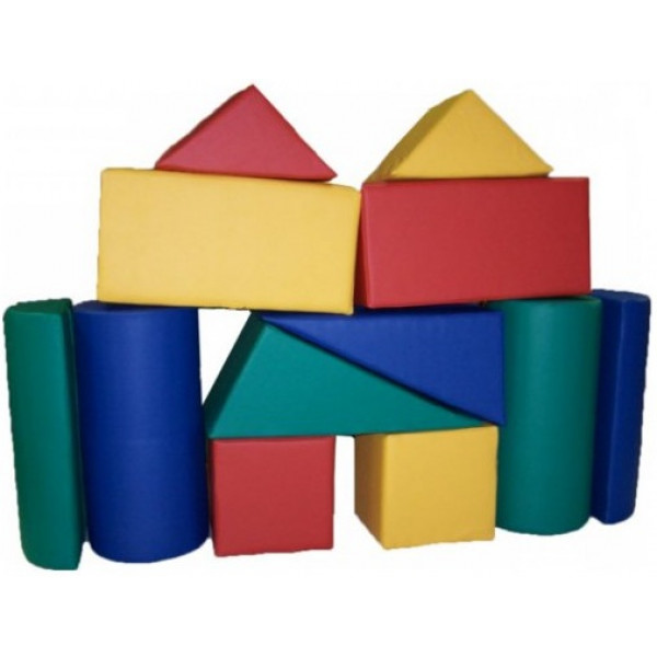 Строительный набор представляет собой сочетание разнообразных геометрических тел (куб, цилиндр, призма и т. д.).