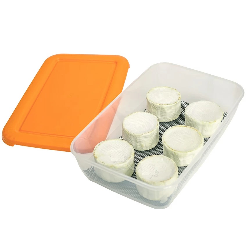 При использовании контейнера не забудьте поместить на дно дренажный коврик! Это предотвратит соприкосновение сырных головок и скапливающейся на дне контейнера влаги.