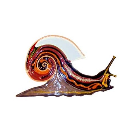 Модель изготовлена из пластмассы путём вакуумного формования. Изображает внутреннее строение брюхоногого моллюска (на примере виноградной улитки), которое можно рассмотреть на сагиттальном разрезе тела животного. На модели видны следующие органы брюхоногого моллюска: