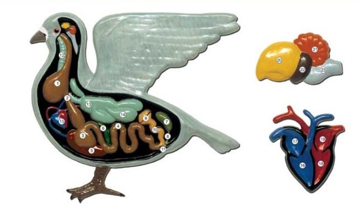 Комплектность:1. Барельефная модель «Внутреннее строение голубя» -1шт.2. Паспорт -1шт.