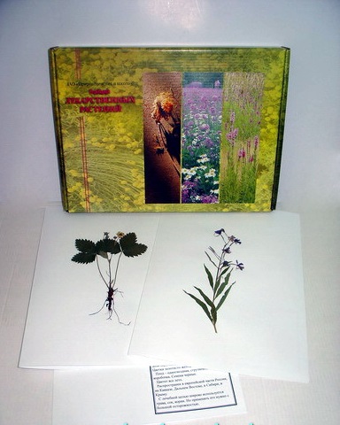 Засушенные растения, некоторые из них с соцветиями и плодами, наклеиваются на гербарные листы (формат А3). В этикетках на гербарных листах даны краткие описания растений. Изделие упаковано в коробку с маркировкой.
