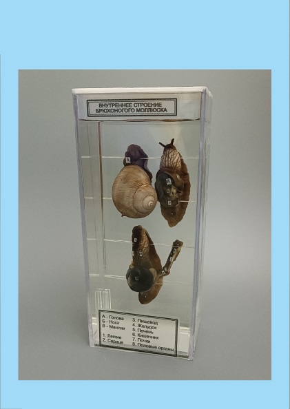 Влажный препарат «Внутреннее строение брюхоногого моллюска» (далее – Препарат) предназначен для использования в образовательных учреждениях в качестве демонстрационного материала на уроках биологии, зоологии, природоведения, экологии.