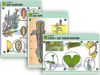 Перечень таблиц: 1. Грибы. 2. Сосна обыкновенная. 3. Зеленые водоросли. 4. Образовательные ткани. 5. Лишайники. 6. Органы цветкового растения. 7. Бурые и красные водоросли. 8. Зоны корня. 9. Зеленые мхи. Кукушкин лен. 10. Семена. 11. Строение и цикл развития папоротника. 12. Клетка зеленого листа.