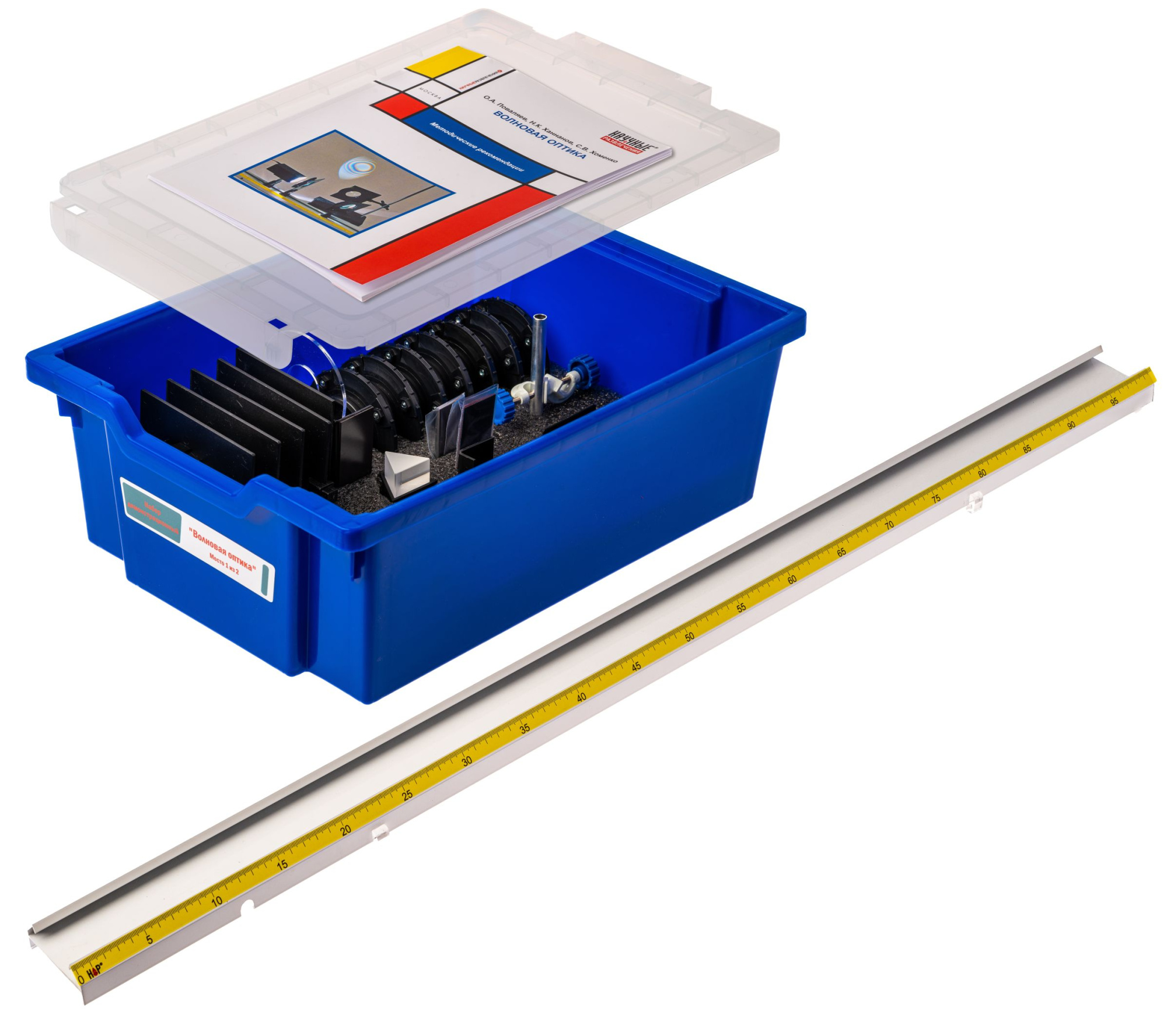 Весь набор (за исключением оптической скамьи) укомплектован в пластиковую систему хранения, которая закрывается прозрачной пластиковой крышкой на защелках для обеспечения наблюдения за содержимым. Все элементы набора располагаются в системе хранения на ложементе.
