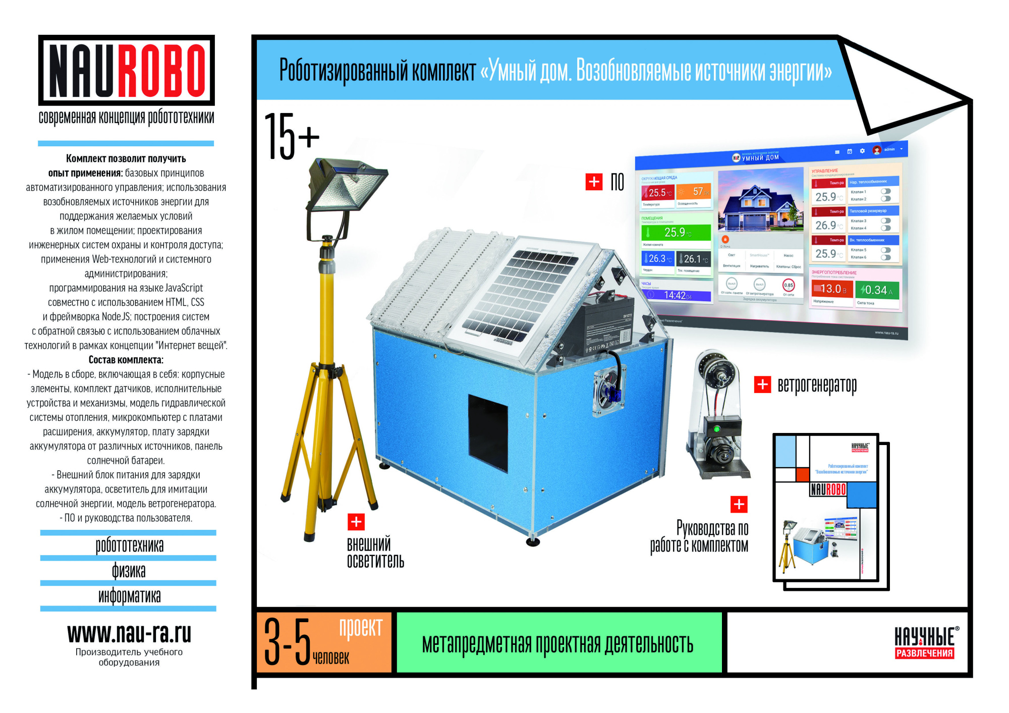 Комплект поставляется в собранном виде и представляет собой настольную модель дома с жилым модулем и двумя технологическими помещениями, которая позволяет: