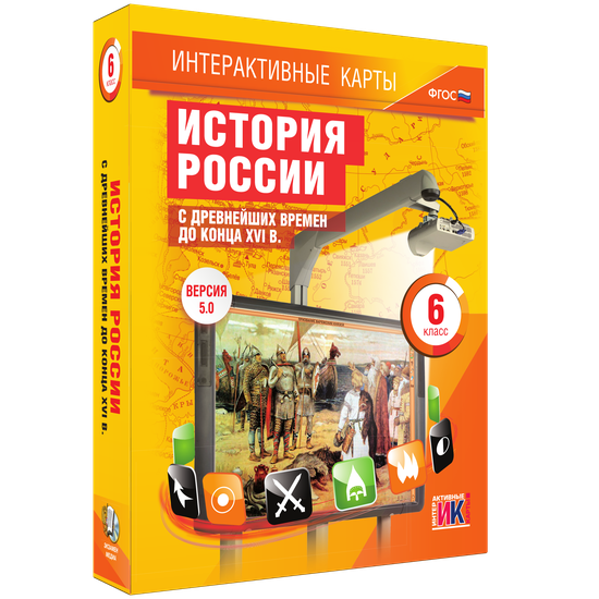 Материал интерактивного учебного пособия «Интерактивные карты по истории. История России с древнейших врёмен до конца XVI в. 6 класс» содержит учебные карты по всем темам курса истории России 6-го класса.