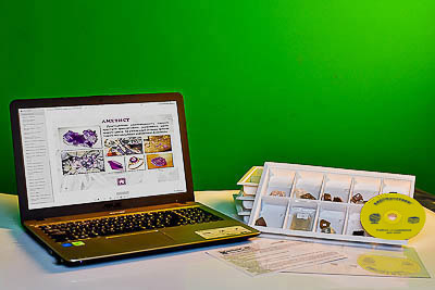 Образцы пронумерованы и упакованы в коробку с ячейками. Комплектуются ламинированным вкладышем, содержащим информацию о свойствах, разновидностях и применении кварца. Интерактивное приложение содержит дополнительные сведения и иллюстрации и позволяет в удобной форме познакомить учащихся с разновидностями кварца в природе, а также со свойствами, способами применения и месторождениями кварца. Электронное приложение содержит дополнительные сведения и иллюстрации.