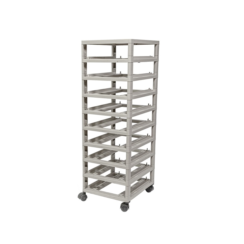 Она имеет форму полочного стеллажа с роликовыми колесами. Количество уровней стеллажа соответствует количеству контейнеров лаборатории.