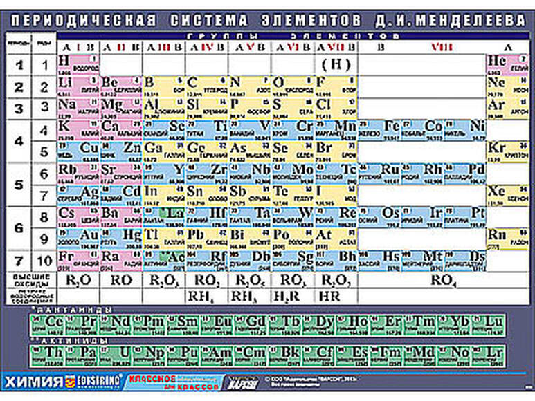 Таблица Периодическая система элементов Д.И.Менделеева 70х100 винил