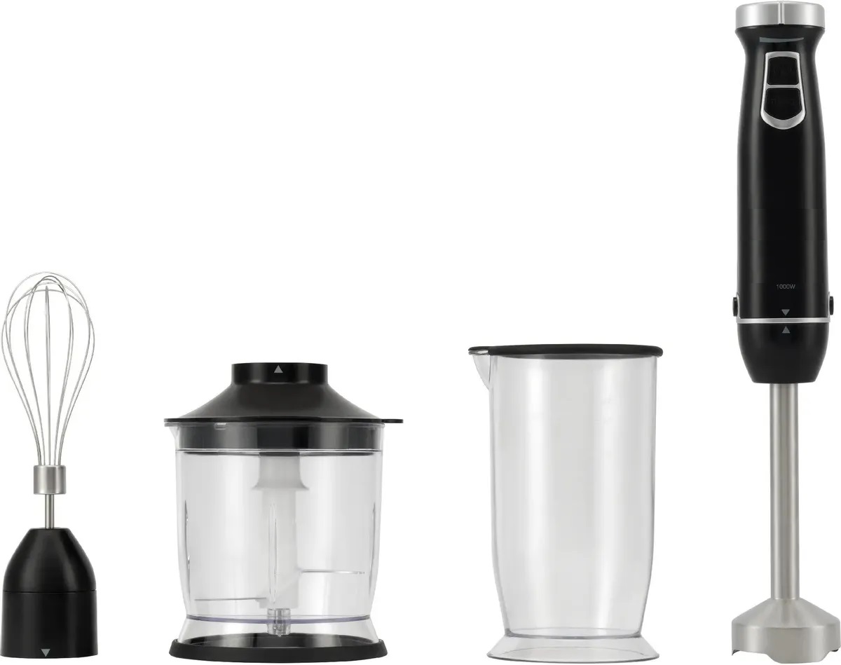 Многофункциональный погружной блендер. Модель оснащена прочной металлической блендерной насадкой и бесступенчатым регулятором скорости вращения, обеспечивающим высокое качество перемешивания и измельчения.