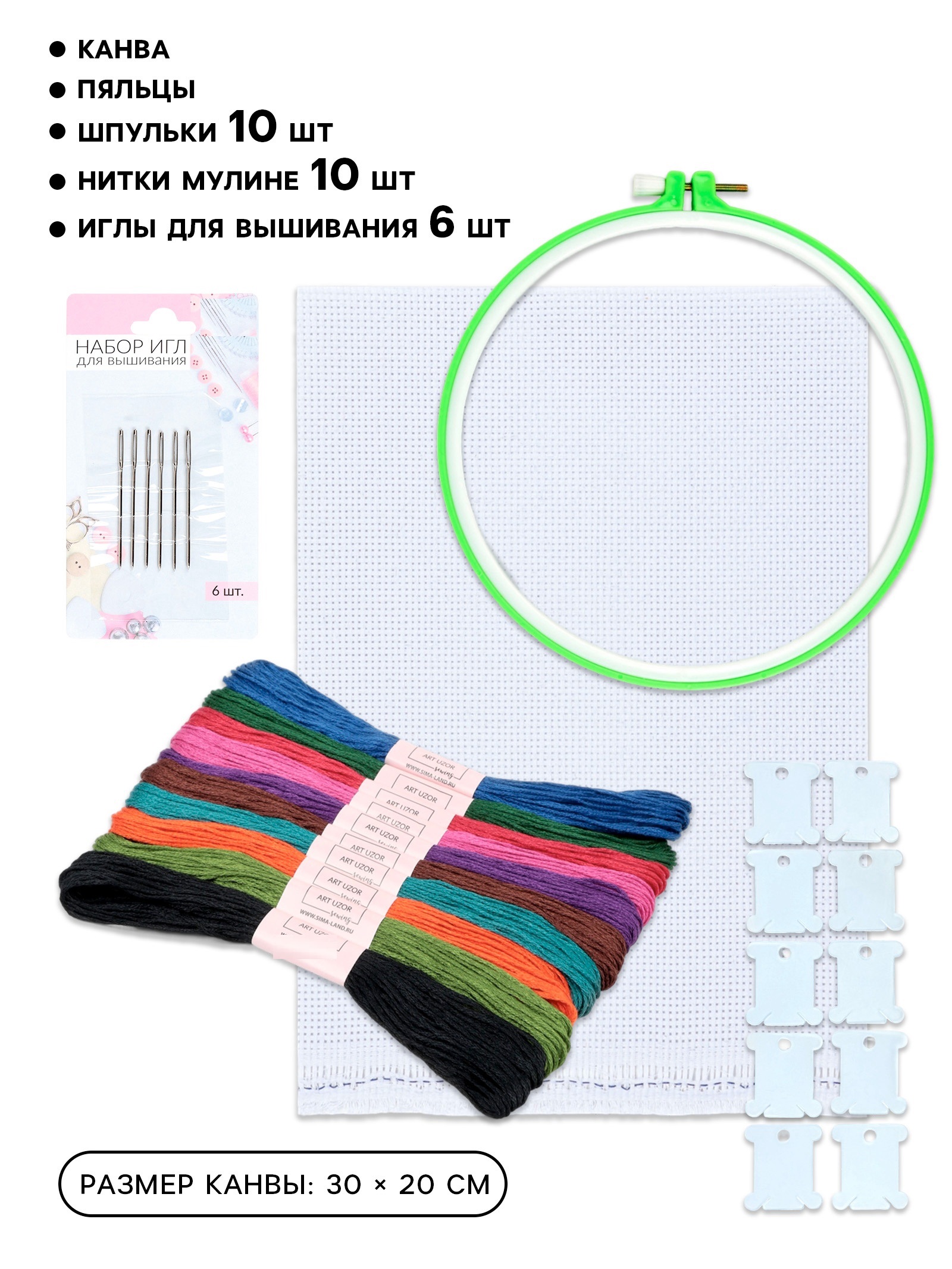 Комплектация-Игла, Канва, Нитки, Пяльцы, Шпульки