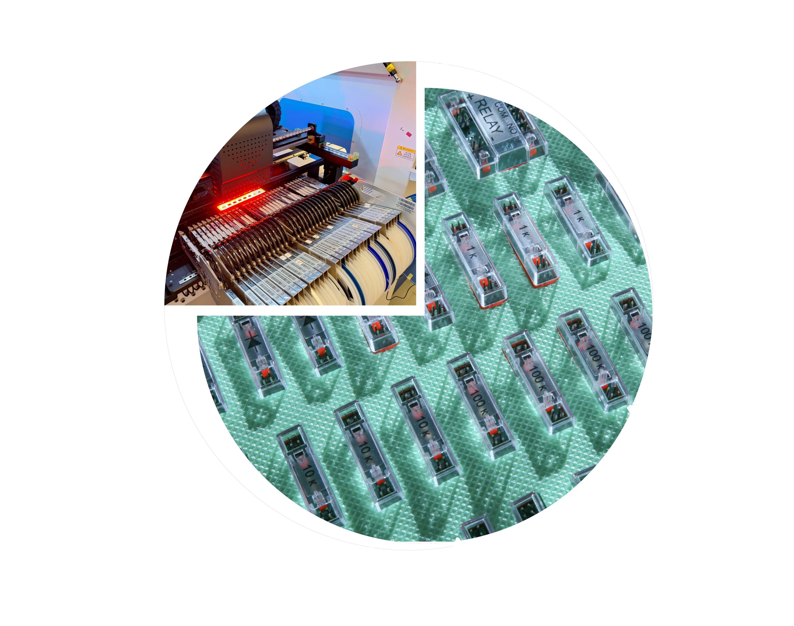 1) Набор элементов, каждый из которых имеет пластиковый корпус с системой крепления с целью установки в монтажное поле для создания электрической цепи: