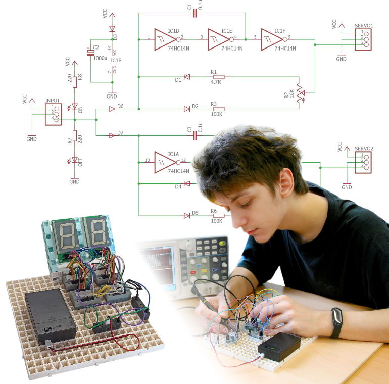 Набор обеспечивает возможность получения пользователем знаний для ориентирования в базовых аналоговых схемах и понимания принципов их работы.