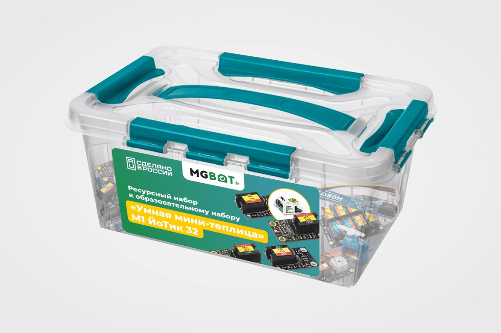 Ресурсный набор для образовательного набора «Умная мини-теплица» М1 ЙоТик 32 предназначен для тех, кто хочет углубленно освоить полный цикл технологии умного выращивания растений. Данный комплект помогает пройти путь от простого знакомства с возможностями умной теплицы до полноценной разработки собственной системы мониторинга и автоматического управления микроклиматом роста растений.